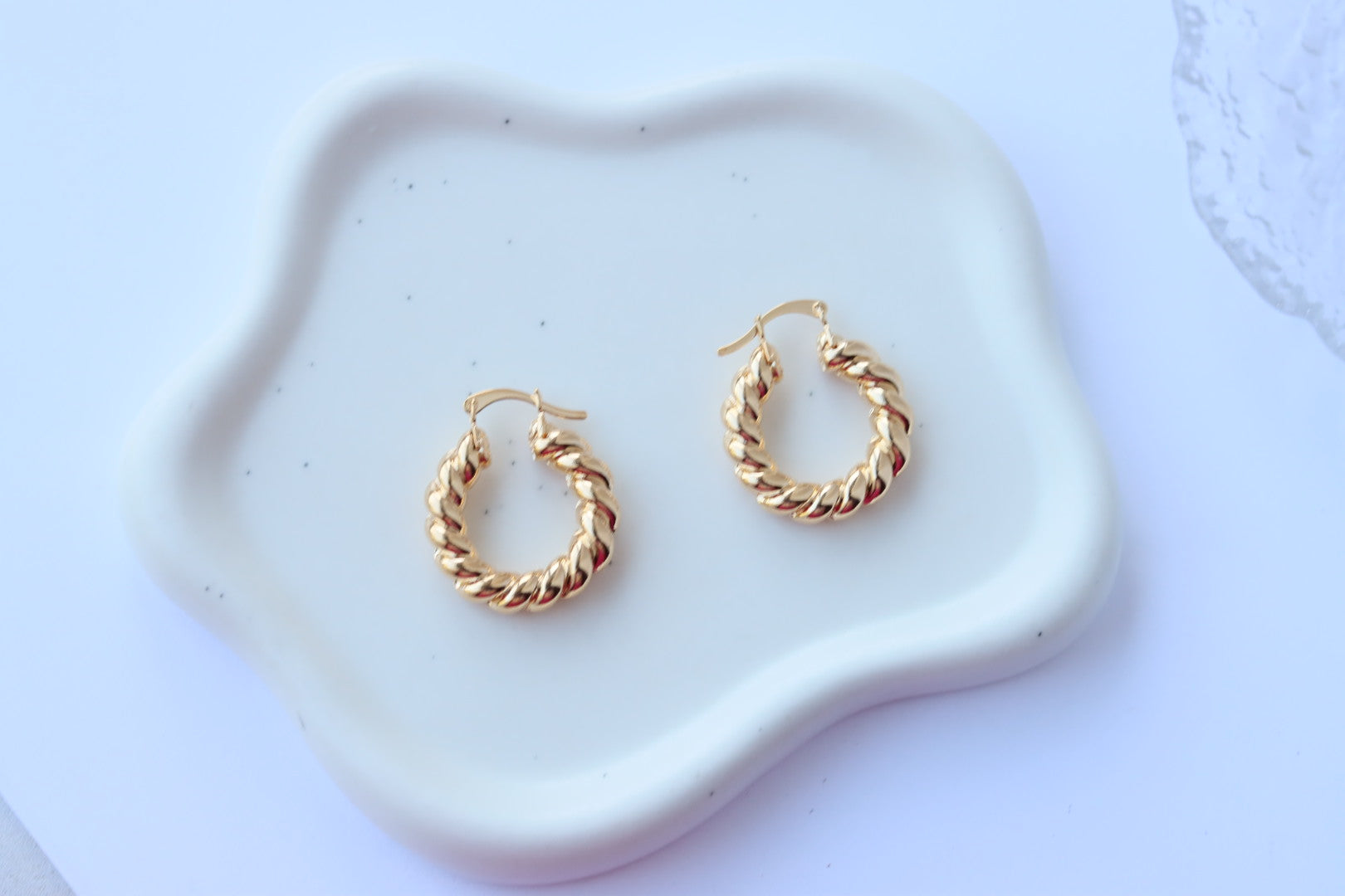 Twisted hoops, 1 inch are perfect for everyday wear or to light up any room for any occasion. Gold filled, water proof, tarnish free, and high quality.